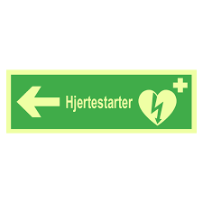 Selvlysende skilte der markerer placeringen af nødudgange eller dette selvlysende skilt er med til at vise, hvilken retning de ansatte skal flygte i. Vi anbefaler god merking i området rundt der hjertestarteren er plassert da det er viktig å finne raskt frem til hjertestarteren hvis uhellet. Hjertestarter skilt for markering av hjertestarter. Tilbehør til skap til hjertestarter. Skiltet er selvlysende og kommer i en størrelse på.